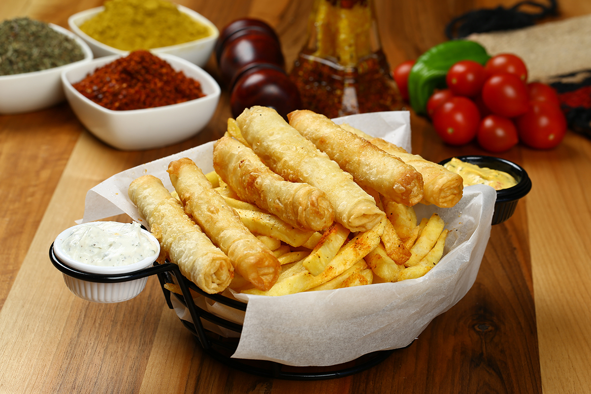 3 adet sigara böreği 1 adet paçanga ve patates kızartması